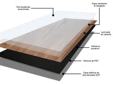 Ideal para zonas húmedas como baños y cocinas. Repele líquidos y se limpia fácilmente con un paño húmedo.