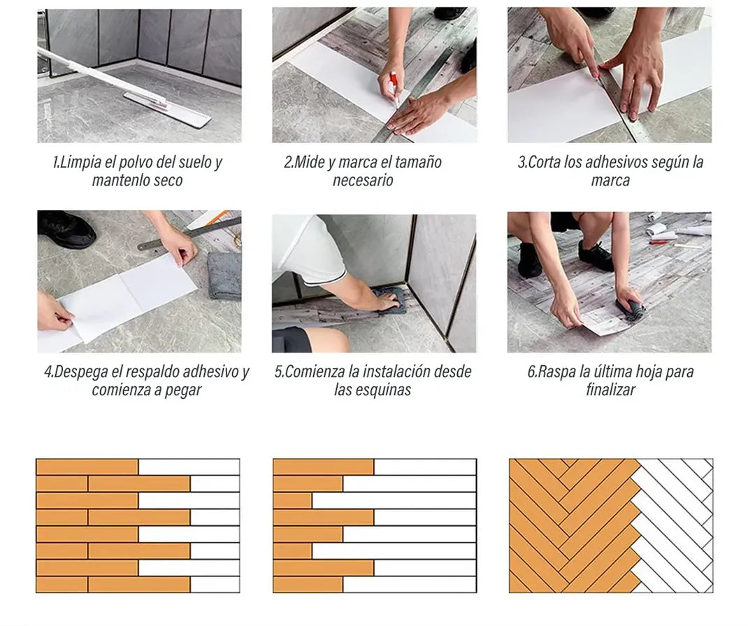 Funciona sobre cerámica, cemento, mármol o madera. Perfecto para renovar sin quitar el piso original.