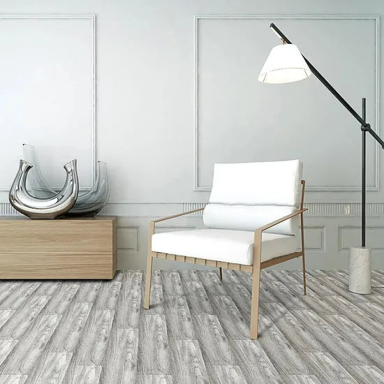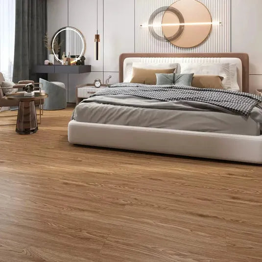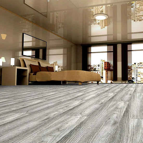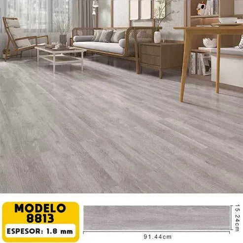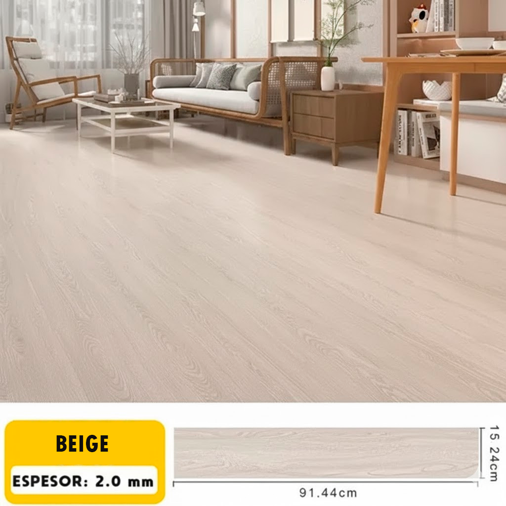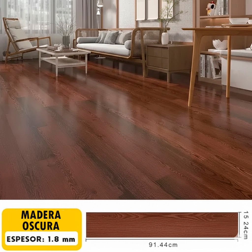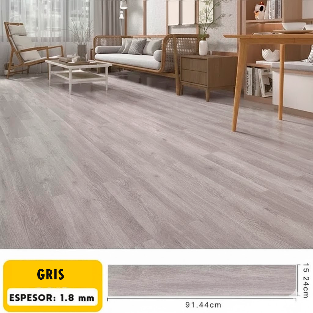 Hecho de vinilo LVT/LVP impermeable, cada caja contiene 36 láminas que cubren hasta 5 m². Su textura realista tipo madera convierte cualquier espacio en un ambiente elegante, moderno y acogedor. Apto para todo tipo de interiores.